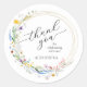 Des autocollants élégants pour la douche de la mariée présentent une couronne élégante de fleurs sauvages aquarelles, merci et votre message en lettrage chic. ARTICLES correspondants dans notre collection.