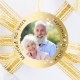 Un fond doré faux orné de faux diamants dorés. Personnalisez et ajoutez une photo et une date. Texte noir.