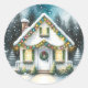Des autocollants de Noël. Mignonne petite maison blanche festive dans la forêt d'hiver.