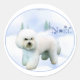 Noel. Evergreens, un arrière - plan enneigé, et le Bichon Frise vous souhaitent une saison de vacances paisible ce Noël. Notre conception de chien fait un grand cadeau pour vous ou un ami.