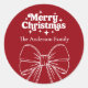 Arrière - plan rouge, texte blanc et arc dessiné à la main. Joyeux Noël est écrit avec un élégant script de style manuscrit. Personnalisez et ajoutez votre nom de famille.