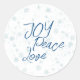 Prussien bleu "joie amour paix" en script heureux sur un arrière - plan léger flocon de neige. Simple et élégant.