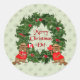 Festive salutations du Canada et des Canadiens. Jolie bordure dorée et rouge a des coins saints de défilement. Arrière - plan couvert de neige avec la couronne sainte et le castor canadien agitant le drapeau devant la feuille rouge. Le texte dit : Joyeux Noël Eh !