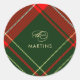 Beau et classique rouge et vert vacances tartan plaid personnalisées autocollant de Noël dispose d'une impression de plaid rustique avec élégant script de calligraphie couleur or et votre nom personnalisé pour compléter le design festif. Cachez vos cartes de voeux de vacances, garnissez votre emballage cadeau ou ajoutez-y votre emballage de Noël réfléchi.