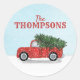 Sticker Rond Noël classique Rustique Camion Rouge Whimsy hiver