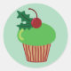 Ce cupcake de Noël mignon et sucré est une délicieuse et jolie gâterie de vacances avec sa cerise rouge brillante, ses feuilles verts saints, son glaçage vert festif et son emballage rayé élégant! OUI !