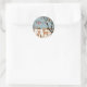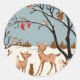 Dans les bois recouverts de neige, les petits animaux trouvent des bas de Noël accrochés aux membres des arbres. Couleurs douces. Les petits animaux comprennent les oiseaux, les écureuils, les cerfs et les lapins.