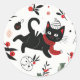 Ce mignon petit chat noir est en train de se faire de l'illusion pendant Noël. Porter un chapeau de Père Noël et une écharpe rouge vif, ce qui peut causer un adorable malaise avec la décoration du yuletide dans cet autocollant de vacances amusant. Le design fantaisiste est d'un motif rétro. Les amoureux de les chats et les appréciateurs d'animaux de votre famille et de vos amis apprécieront vraiment cela lorsqu'ils recevront vos cadeaux et vos colis.