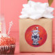 <b>Animal Parade Festive Cow</b>Christmas Gifts and Accessories présente l'oeuvre amusante d'une jolie vache noire et blanche décorée dans un chapeau de Père Noël debout dans un paysage enneigé contre un ciel étoilé bleu foncé texturé numériquement peint par notre talentueux illustrateur de livres pour enfants, Traci Van Wagoner. Sur le dos de beaucoup de ces cadeaux animaux amusants, vous trouverez aussi notre vache fantaisiste du dos portant une couronne sainte avec un arc rouge de Noël. Notre art festif de la vache fait des cadeaux uniques pour les amoureux de Noël, les amateurs de vache, les amoureux des animaux, les amoureux des animaux de ferme, les amoureux des animaux de la cour et les amateurs d'art mignon sur votre liste de cadeaux cette saison de vacances. Décorez votre maison et les boîtes aux lettres de votre ami cette année avec une adorable vache toute décorée pour la saison, et profitez d’une saison de vacances moo-arvelante.