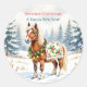 Des autocollants de Noël super mignons. Il a une aquarelle d'air illustration d'un Shetland Pony debout dans un terrain de vacances capricieux pendant une journée d'hiver enneigée avec en toile de fond des pins.