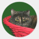 Chat d'écaille dans un autocollant rouge de photo de Noël de panier