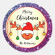 Sticker Rond Noël drôle Rudolph Reindeer Parties scintillant vi