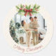 Sticker Rond Noël Élégant Holly & Ruban Rouge -