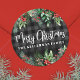 Célébrez la saison avec cet autocollant rond et cosy de Noël présentant un fond à carreaux de buffle noir et gris audacieux. Au centre, « Joyeux Noël » est écrit dans un mélange de polices sérif classiques et de script, avec le nom de votre famille affiché juste en dessous.