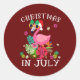 Sticker Rond Noël En Juillet Flamant rose Rose Hawaii Funny