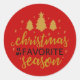 Art de Noël : "Noël est ma saison préférée" en or et noir police moderne avec silhouettes d'arbre de Noël sur arrière - plan rouge