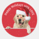 Sticker Rond Noël Golden Retriever rouge à lèvres baisers