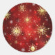 Sticker Rond Noël Golden Snowflakes sur Arrière - plan rouge
