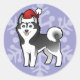 Sticker Rond Noël Husky sibérien / Malamute d'Alaska