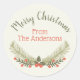 Joyeux Noël en police cursive vert foncé avec baies rouges saintes et accents à feuillage persistant de branches. Personnalisez avec votre nom ou message en lettres de police rouge correspondant.