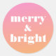 Un autocollant de Noël moderne et gai avec un arrière - plan dégradé rose à orange et "joyeux & lumineux" écrit dans une typographie moderne blanche et courageuse à la mode.