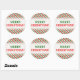 Ce modèle d'autocollant rond de Noël comporte un motif de rayures rouges, blanches et vertes. Ce sont des couleurs communément associées à Noël. Il présente également l'accueil chaleureux, "MERRY CHRISTMAS !", en texte rouge et vert. [~Z0000114]