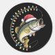 Sticker Rond Noël Papa Basse Poisson Drôle Pêcheur Pêcheur