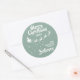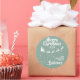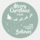 Montrez à quel point vous croyez à la magie de Noël et du Père Noël avec cet autocollant rond de la famille de Noël avec la silhouette de Père Noël traîneau en blanc avec ses rennes, volant dans une traînée d'étoiles. La légende sur le dessus lit Joyeux Noël en blanc écrit à la main. Le texte est facilement personnalisable avec vos souhaits, année, nom de famille ou nom d'entreprise. Cet autocollant fait le sceau de Noël parfait pour les souhaits de famille ou peut être utilisé pour décorer vos cadeaux de Noël