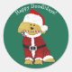 Sticker Rond Noël personnalisé Goldendoodle Père Noël