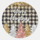 Sticker Rond Noël Plaid Et Parties scintillant Joyeux Noël