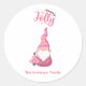 Sticker Rond Noël Rose Gnome Avec Chapeau de Vigneron Jovial