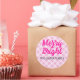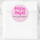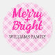 Sticker Rond Noël rose tartan Joyeux Bright Nom de famille