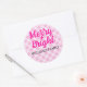 Sticker rond de Noël rose Joyeux Nom de famille Classic. Jolie élégante Noël Hiver Nouvel An festif Enveloppement Cadeau Fournitures pour elle. Beau look de Noël motif rose clair plaid par PLdesign.