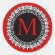 Sticker Rond Noël Rouge Monogramme M Fleur de lis Mariage