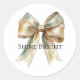 Sticker Rond Noel Rustique Blanc Vert Or Bow Personnalisé