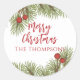 Sticker Rond Noël Simple Red Holly Berries Pine Feuilles