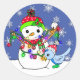 Sticker Rond Noël Snowman et Oiseau bleu neige
