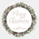 Sticker rond classique de Noël de verdure moderne Sticker de Noël de verdure douce dense ou feuillage de couronne autocollant de Noël avec texte éditable couleur terre cuite. Cet autocollant cadeau de Noël est une belle façon d'ajouter votre message de Noël pour les amis et les cadeaux de famille.