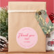 Nœud rétro rose et rouge merci Autocollant rond classique. Les articles assortis sont disponibles.