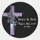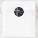 Sticker Rond Noir avec Croix violette avec Fleurs violettes