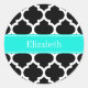 Sticker Rond Noir Blanc Marocain #5 Brt Nom Aqua Monogramme