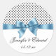 Sticker Rond Noir Blanc Pois Bleu Ruban Enregistrer La Date