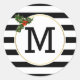 Sticker Rond Noir blanc rayures sainte baie monogramme Noël