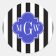 Sticker Rond Noir Blancs Cobalt Bleu Quatrefoil 3 Monogramme