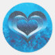 Un grand coeur, beau, simple, dans les tons bleu aqua, ciel, royal, marine et bleu cobalt est entouré d'un arrière - plan grinçant et affligé dans les noirs et les bleus vibrants.