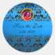 Sticker Rond NOIR BLEU DAMASK MONOGRAM, rouge rubis saphir