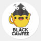 Sticker Rond Noir Cawfee Funny Crow Coffee Pun de café