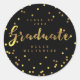 Sticker Rond Noir Classé Diplômé Faux Gold Foil Confetti