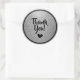 Ceci est un merci pailleté faux élégant dans la combinaison de couleurs populaire d'argent et de noir avec une icône de cœur. Le texte est un modèle que vous pouvez modifier pour l'adapter à vos besoins. C'est idéal comme sceau d'enveloppe ou étiquette de cadeau pour les mariages, les baby showers, les anniversaires, les anniversaires de mariage, les remises de diplômes et plus encore. #noiretargent #fauxpaillettes #pailleté #paillettes #élégant #merci #élegant #fancy