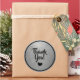 Sticker Rond Noir et argent Faux Paillettes Merci